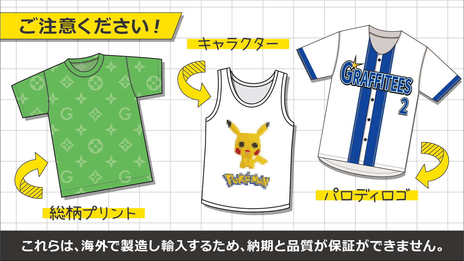実在する企業やスポーツチーム等のロゴが入ったデザインのTシャツは、正規品ではない場合、絶対に注文してはいけません。
